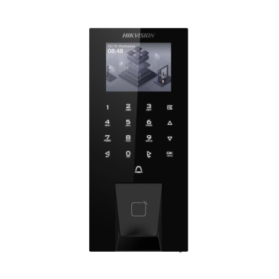 Терминал контроля доступа | Функции: Контроль доступа / Сканер отпечатков пальцев / Считыватель бесконтактных карт доступа / Сенсорная кодонаборная клавиатура / Несколько режимов аутентификации / Разблокировка пропускного пункта / Информационный дисплей / Отображение кода набора / Информационные подсказки | СКУД: Сканер отпечатков пальцев 1×Биометрический / Считыватель бесконтактных карт 1×Mifare 13.56Mhz / Код доступа | Видео: Дисплей 2.4″ (6.09см) LCD Черно-белый / Разрешение: 320×240пикс. | Память: 5’000×Отпечатков пальцев / 5’000×Карт доступа / 150’000×Событий | Интерфейс: Ethernet 1×RJ45 10M/100Mbps / 1×Wi-Fi 2.4GHz IEEE802.11b/g/n / Аудио 1×Выход / Сигнальный 2×Вход/1×Выход / Реле 1×Выход / 1×USB / 1×Wiegand 26/34 / 1×RS485 / Bluetooth / 1×Кнопка доступа / 1×Датчик двери / 1×Тампер датчик вскрытия и демонтажа устройства | Время сканирования отпечатков пальцев: