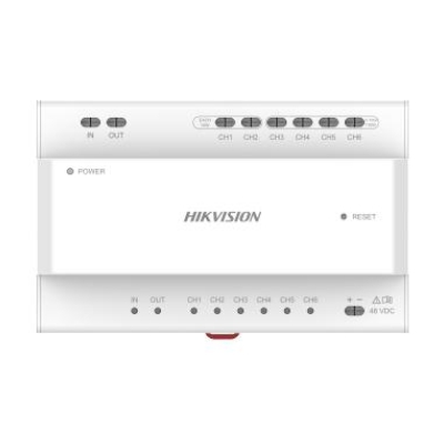 IP Домофон, коммутатор адресный | Интерфейс: 8×2-проводная коммутация (IN/OUT для DS-KAD7060EY/DS-KAD7060EY-S, CH1-CH6 для дверной станции и внутренней станции) / 8×Индикатор сигнала / 1×Питание | Reset Кнопка сброса настроек | Инсталляция: DIN Рейка | Цвет: Белый | Применение: Внутреннее | Питание: DC 48V / CH1-CH2 15W / CH3+CH4+CH5+CH6 110W | Температура: -10°C…+55°C | Размер: 143.7×92.4×65.9мм